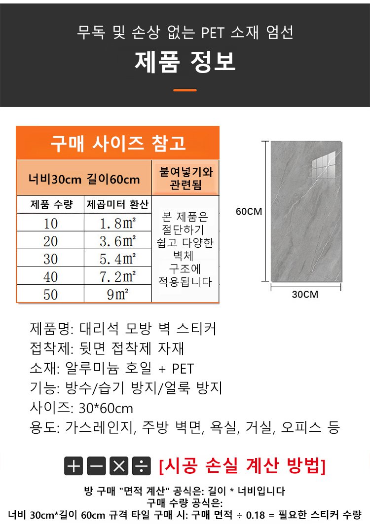 [저가 판매] 리뉴얼 및 개조 대리석 모방 벽 스티커
