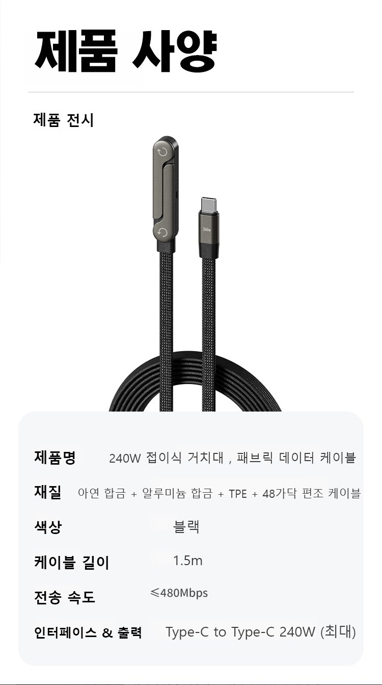 【거치대 + 충전 케이블】2in1 접이식 240W 초고속 충전 케이블
